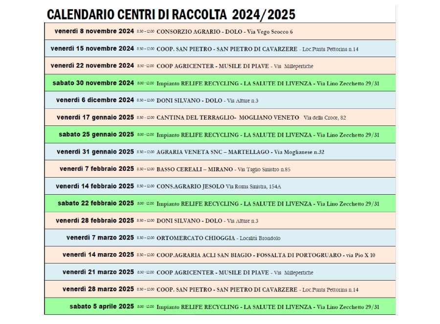 Home - News ed eventi - News ed Eventi - - Calendario rifiuti agricoli 2024/2025